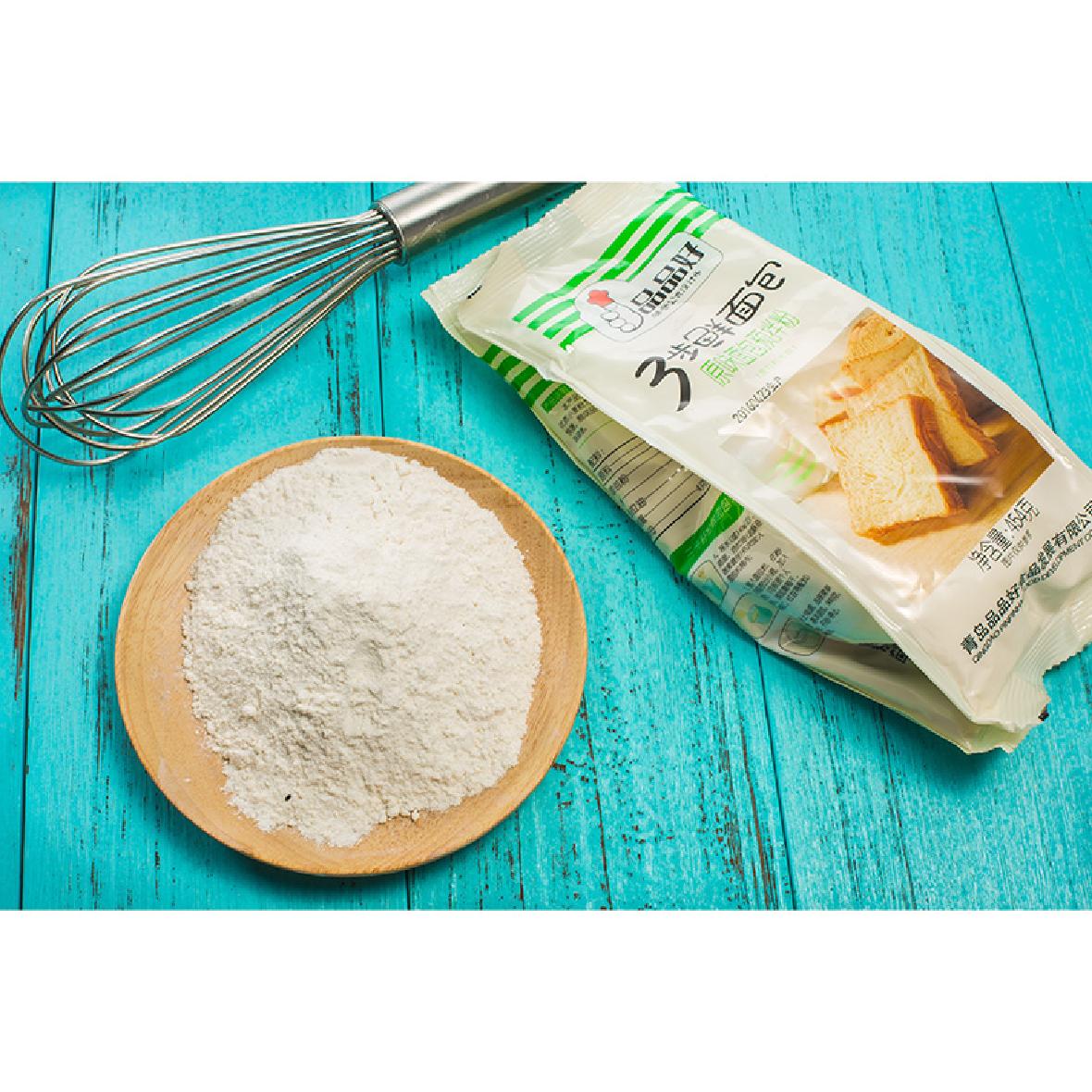 2、健康放心:家用面包预拌粉产品选用高筋小麦粉为主料,其各项指标都严格符合国家标准,大家可以安心购买食用。